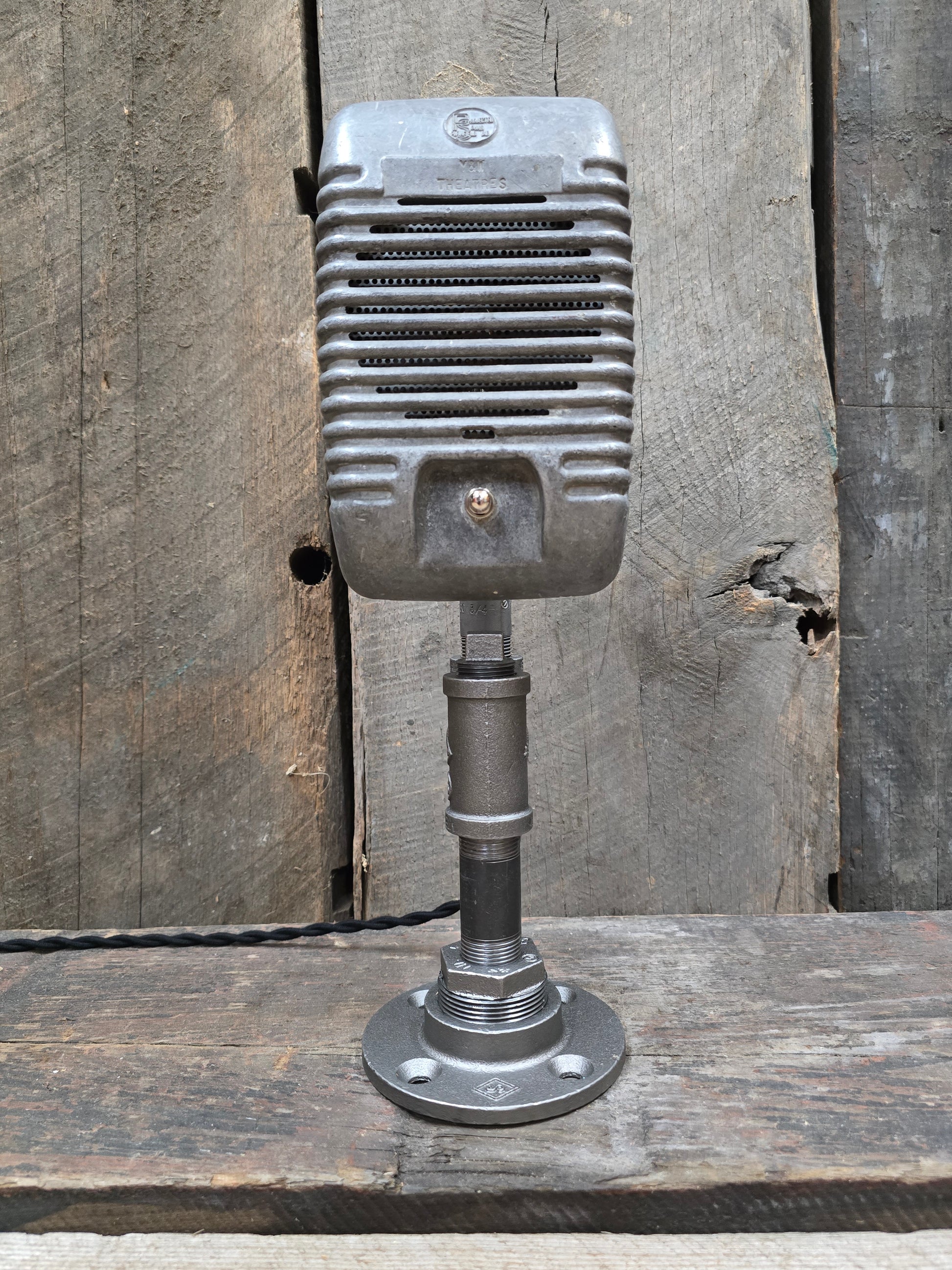 Vintage drive-in speaker and black pipe lamp. Rotary switch on speaker.
